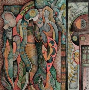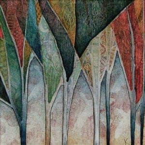 Karen Jablonski is an award-winning artist from Monticello, Georgia, who works in the medium of painting enamel, among other media. Her richly detailed semi-abstract enamels often contain hidden images, symbols and patterns, inviting the viewer to study her works intently. We spoke to Karen and asked her several questions about her experience with glass on metal.