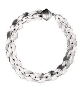 Heinrich sees other changes in her work as well, a complexity that comes from absorbing influence, especially since her move to America. "I used to do simple clasps; now I am doing double and triple strands. In rings, in the past I did narrow bands. Now my rings have volume. They are more three dimensional. They are fuller. Everything is entering a new dimension."