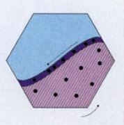 As the barrel speed is gradually reduced, the parts and media begin to move in a regular and orderly manner (Figure 2c), and effective cutting or burnishing action can take place. Note that there is a very little relative movement of media against parts within the bulk of the load or in the regions adjacent to the walls of the barrel. However, in and near the top layer of the load, there is a relatively narrow layer in which the components are constantly sliding and rolling downwards under the effect of gravity. It is only within this relatively narrow zone (the slide zone) that the desired cutting or burnishing action occurs (Figure 3).
