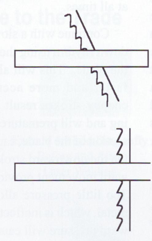 Release the forward pressure on the upward return stroke. It only repositions the blade for the next downward cutting stroke. Excessive pressure while dragging the teeth on the up stroke can cause the blade to misshape and the teeth to wear unevenly.