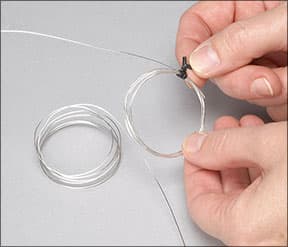 The 2-yd. (1.8m) coils will yield approximately 14 in. (35.6cm) of braid. To finish the braid, twist the wire ends around each other.