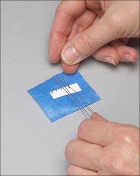 Attach the wires to the dowel. Tape the strip 1 in. (25.5mm) from one end of the dowel so that the coils will unwind along the length of the dowel.