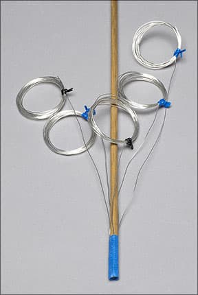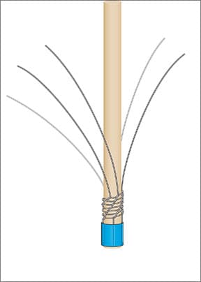 Remove the dowel. Use wire cutters to clip the wires at the taped base. Twist the wire ends together. Grasp the braid, and twist it slightly to remove the dowel. Be careful not to crush the braid.