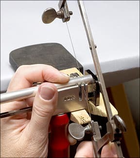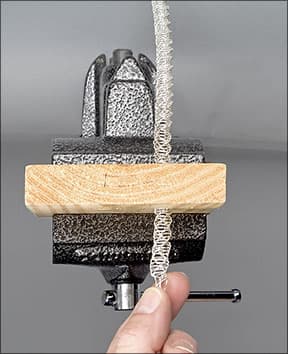 Place the wood in a vise. Using your fingers, pull the braid through the hole a few times to lengthen and even the braid.