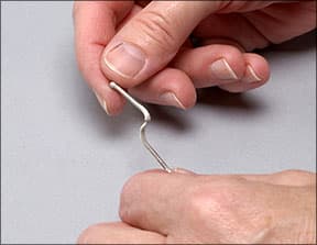 Open the U bend. Hold one end of the wire in each hand. Pull the wires past each other as you would open a jump ring.