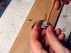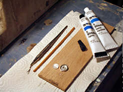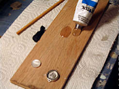 When setting stones or other objects, the color of the plaque's interior often affects the stone's appearance, depending on the type of stone. Black coloration beneath mother-of-pearl shell gives the shell's surface a gray, blue, and purple haze. You can produce a fine, black coloring pigment by rubbing a wooden dowel against a charcoal stick. Grate the charcoal powder directly into your epoxy, and mix it in. You can also use this technique by grating colored pastels into your epoxy. Coat the lining of your plaque with the colored adhesive, then set your stone, shell, or other object.