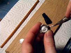 Before you create a colorful mess experimenting with colored epoxies, try different color and stone combinations using colored paper or fabric. Temporarily place the material inside the setting, place a piece of dental floss across the opening (as a removal tool), and press the stone in to see how the color affects the stone's appearance.