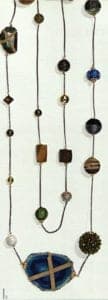 This topic is like a monastery, ascetic in style and is reminiscent of a Nordic design with a touch of folklore. In a world of excessive provision, the motto here is to concentrate on the essential. The Italian artist Giorgio Morandi, who is known for his still lives, influences this trend. The predominant colors are natural grey and blue tones, hemp and white. The matching jewelry reminds once more of the equipment carried by a pilgrim, and is certainly functional. Belt buckles and clasps, hammered copper balls, long necklaces and amulets, silver and matt gold in antique look match this trend.