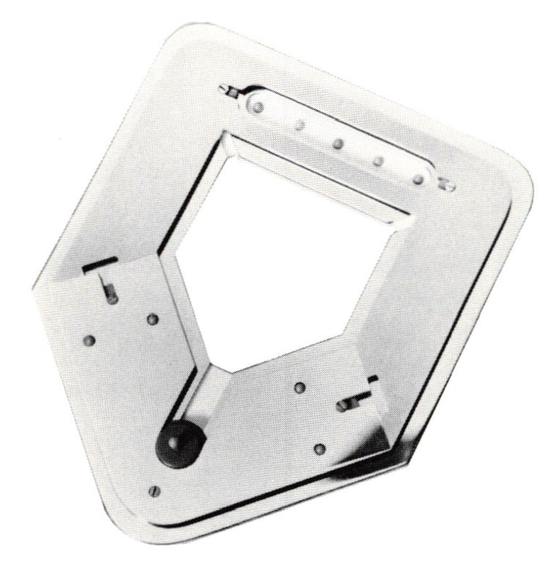 Most intriguing were fashion statements of Anita Evenepoel, whose particularly thorough and dramatic approach to body adornment was expressed in black rubber. Concise and clever, the jewelry functioned through the use of clothing formulas. Buttons snapped together collars and cuffs. Poncho forms were cut and pierced like leather. Bernard Franҫois electrified with his high-tech imagery. Refinements and energy integrated miniature universes that focused on the beauty of our increasingly technological environment. Claude Wesel is a marvelous technician with an established reputation in contemporary metalwork and whose pieces exhibited hard-hitting visual design systems.