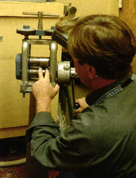I want to take a moment first to discuss rolling and annealing procedures. It's been said that one ounce of gold can make a wire a mile long. For some, that seems impossible because when you're making wire, it breaks at about 6 inches. Annealing is the key. Gold,silver, platinum, and other non-ferrous (non-magnetic) metals have an amorphous molecular structure. Amorphous is derived from the Greek word meaning "without form". The structure of amorphous materials follow no particular pattern. Imagine, if you spread hay on the ground, and each straw is a gold molecule. There will be no pattern to the straw. But, if you begin to rake the hay in one direction, a pattern of the straws lining up in one direction will begin to emerge.