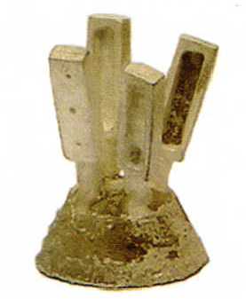 Next, we decide on the location of the three stones. I mark and measure their location, and put three divots into the bar. I don't like to cast pieces with holes if I can avoid it to reduce the possibility of porosity, or failed wax patterns. I like to just mark the location, cast the piece, and then drill the holes in the metal' I solder on a sprue and make a rubber mold. Then I cast a few to see how they came out. The photo shows the divots on the front, and the hollowed back. Now let's set the stones.