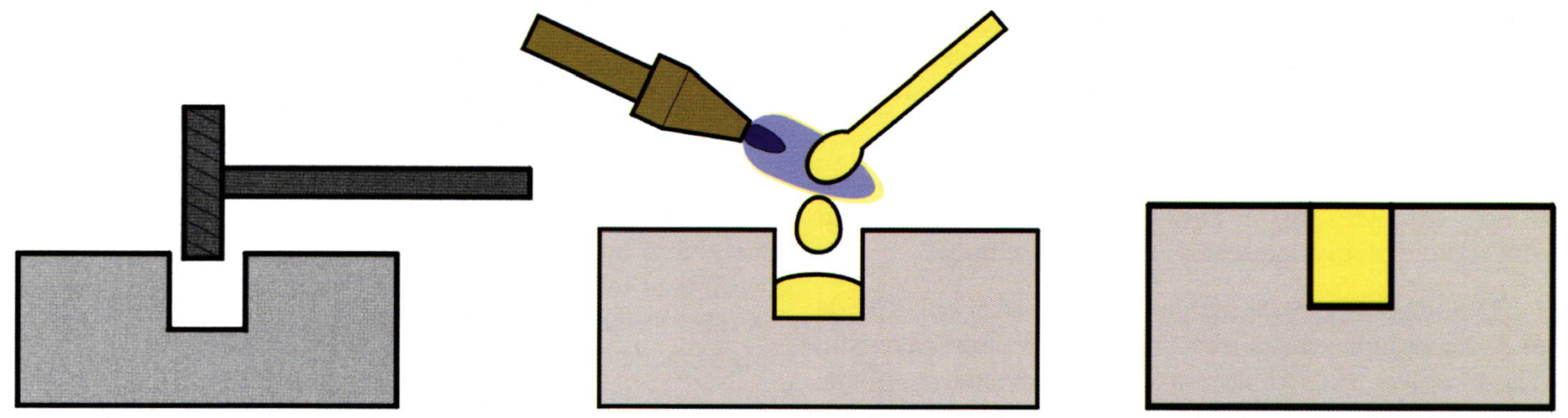 To inlay gold into platinum first cut a groove into the platinum with a bur. Then select a wire of gold smaller than the groove. Using your torch, melt the gold into the groove fusing it to the platinum. Because of the high melting point of platinum, you do not have to be concerned about melting the platinum jewelry. File the surface even and finish using emery papers.
