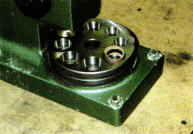 Next, place the band wrapped in leather in the compression die on a standard ring stretcher.