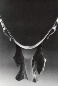 Her newest look, the Clothesline Series, incorporates textured, colored niobium and titanium as elegant rags fluttering from forged sterling neckwires. The use of grade-one titanium permits her to transfer the skills perfected in her earlier shell structures to this normally limited material with striking and original results.