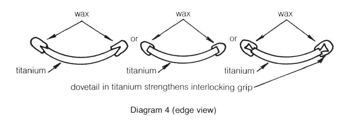 Other variations include placing wax on both sides of the titanium so that undercutting is not necessary: