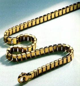 Inhabitants of the legendary city of Ur were unable to drag themselves away from the beauty, precision and uniqueness of a handmade chain. The oldest known type of chain, the foxtail chain, which remains just as popular today, was found there as a grave gift. It is the only type of chain in which the loops are soldered shut before they are linked up in the chain. This is why it is fair to assume that it is the oldest form of metal chain. After all, soldering a loop after it had been fixed to the chain was hardly possible in earlier days over an open fire. Goldsmiths invented the cable chain around 2,000 BC; the basic oval form of the loops is still the basis for many types of chains today. New and imaginative forms and types were added over the centuries, confirming the trend towards high quality, handmade chains, and also the variety of design and the freedom to combine.