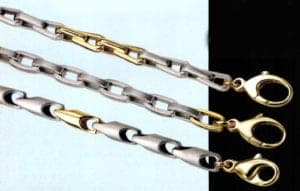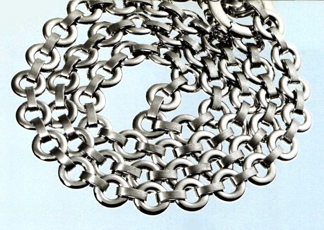 There are almost countless variations of the basic chain. In essence, the following characteristics of a chain can be altered: Wire form, loop form, loop width and size, number of loops on top of each other, purity of the chain form, surface structure, material and/or color.