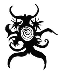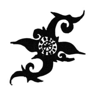 The Iban men tattoo their torsos, shoulders, thighs, and arms with images of abstract dragons, whirling spirals and rosettes. In the Kenyah and Kayan tribes the women are the ones to receive tattoos, covering the hands and lower arms and the feet and lower legs with intricate scrolls, dragons, and spirit faces. Like the Thai tattoos, the designs are magical protective devices to ward off evil.