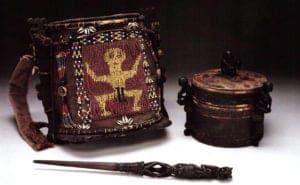 This is precisely the area from which the young Michael Rockefeller mysteriously disappeared in 1961 while collecting magnificent carvings for the Museum of Primitive Art. The Asmat world is richly inhabited by spirits. Carvings are given names of former ancestors and are thought to take on their powers. These ancestral spirits require fulfillment of obligations, especially retaliation for death. In turn, they will benefit the living by maintaining harmony in villagers' relations, sufficient food supply, protecting against natural disaster and disease, and ensuring procreation. This fulfillment is achieved through specific ceremonies, offerings, and the creation of carved objects in the form of drums, sculptures, spears, oats, and shields.