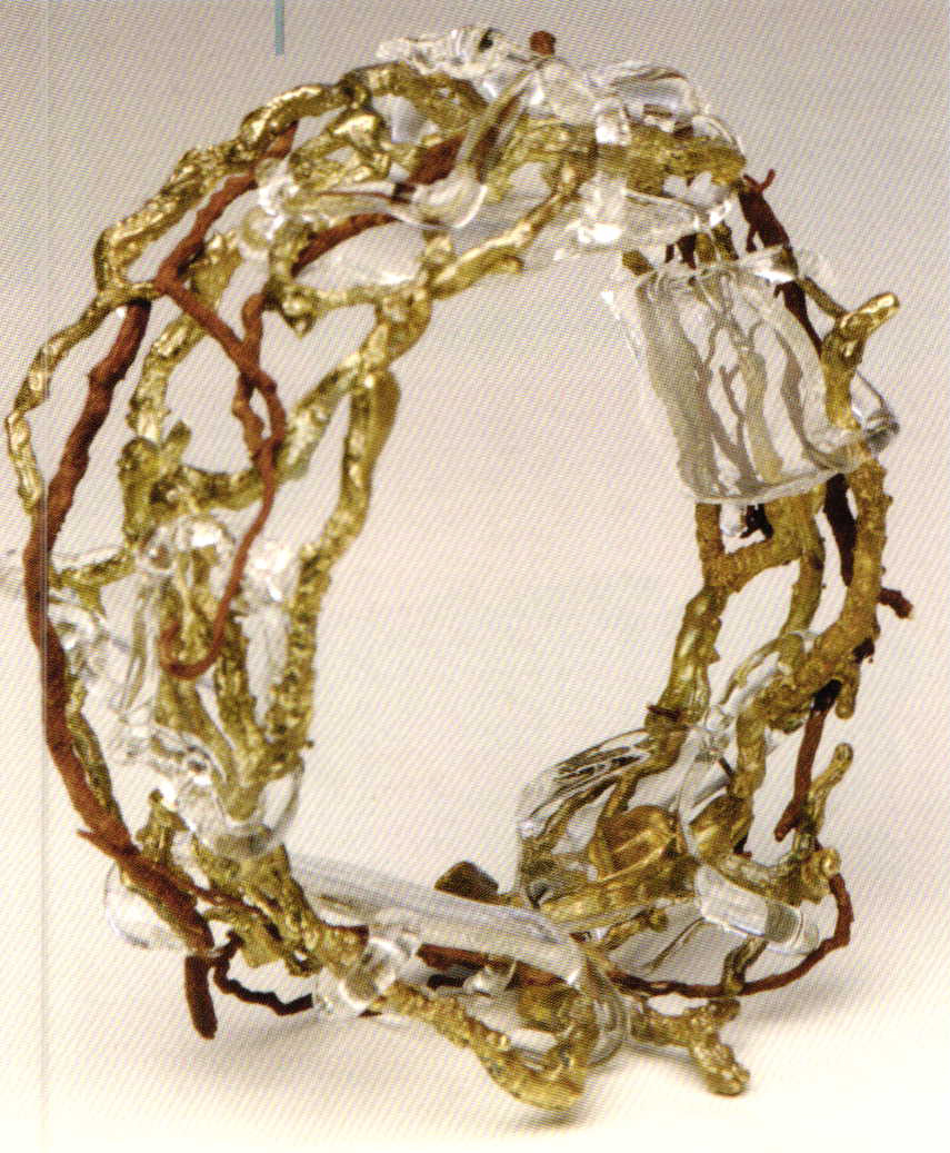 'Root' bracelet made from wood, glass and brass by Laure Boulard who graduated in the Artistic Professions of Jewelry and Fine Jewelry in 2006