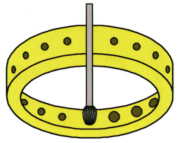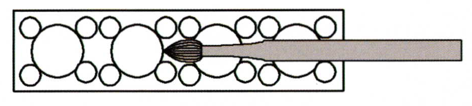 When setting diamonds into a plate, use a bud bur to open up the inside ofthe hole to accommodate the pavilion of the diamond. The bud bur size is limited only by the size of the diamond. This bur should allow a partial opening only and is not to be used for the final cutting of the seat.