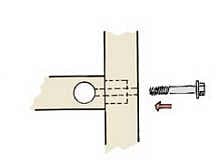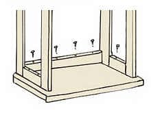 Flip the bench upside down and set the top into position. Attach it with lag bolts and washers.