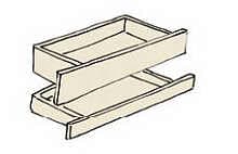 Make two drawers, one with 6″ sides that will be close to the top and another with shallow sides that will catch sweeps. The dimensions will depend on the space between the legs and the clearance needed for the drawer glides calculate this before starting the drawers.