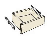 To divide the drawer into smaller units, cut a center divider with a shelf track. Set small board of the same height along the walls, and make small open boxes about half the depth of the drawer to slide along these tracks.