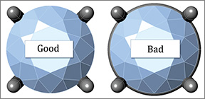 If you're designing jewelry using CAD, understanding how the piece will be cast and then set and finished at the bench can mean the difference between failure and success. When modeling prong settings, there are a few tricks you can use to ensure the best results for your pieces. I learned the following rules during an Advanced Stone Setting Class taught by Blaine Lewis at the New Approach School for Jewelers in Franklin, Tennessee -- and I've been applying them to my CAD models ever since.