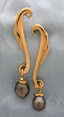 ![]() | Dimensional, sculptural forms are a specialty of Skinny Dog as shown in this Matrix rendering of a patterned gray-black pearl ring which they rebuilt for a customer. Skinny Dog has been called upon to build reproductions of their customer's jewelry that are either so worn they are falling apart or have been lost. In the case of the latter, they must work from available photographs to re-create the pieces. Unlike wax carving, where material is taken away, Jen builds components and assembles the models in Matrix. There have been countless clients for this unique service, including those seeking to replace one lost earring from a treasured pair or hoping to duplicate an heirloom of intrinsic value. |