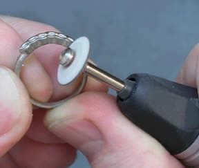 The rings were again pre-finished then polished using Foredom's Blue and White platinum polishing compounds. The white compound is very fine and produced a very high luster in the palladium white gold rings.