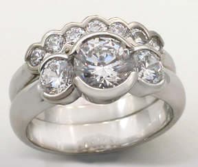 Shown is the computer aided design rendering of one view of the wedding and engagement ring design the customer selected.