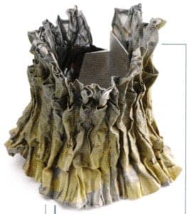Pawet Kaczyriski loves to experiment with a wide variety of materials and different surface designs where he frequently combines materials that don't seem to match one another. In his work, he has already effectively combined eggs with metal and amber with aluminum. He surprised everybody by using the unique combination of artificial grass and silver jewelry. Searching for new ideas is the motivating force that drives him on to discover hitherto unknown physical characteristics in the materials he crafts. Can silver look like leather? Can stainless steel be made to appear like silk fabric? In Pawel Kaczynski's world, the answer is yes!
