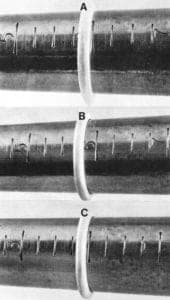 ![]() | 2 The three segments of the photograph provide a practical demonstration of typical casting shrinkage. A) The original model B) Shank as cast C) Final size after buffing |