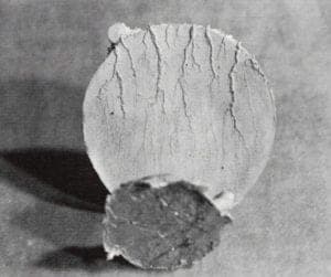 The majority of spherical nodules are caused by incomplete air removal from the investment (see Figure 6). The solution is proper vacuuming and/or spatulation and vibration during the investment process. Very small nodules may occur if the material is vacuumed for too long. Failure to use an appropriate wetting agent may also be the problem. If your equipment lacks a reliable vacuum gauge, you may check the vacuum level by placing a tumbler of room temperature water in the chamber. It should come to a boil about 1 to 1½ minutes after the vacuum pump is started.