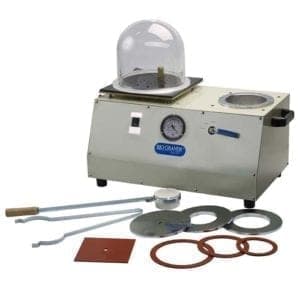 Most metalworkers recognize the inherent dangers of molten metal and a spinning casting arm. However, there are some less obvious dangers in the process. A 10-inch bell jar has a surface area of approximately 1,000 square inches. This means that when it is evacuated there is a total pressure of over 14,000 pounds on its surface. An implosion caused by a defective or damaged bell jar can be very dangerous. The typical investment materials contain as much as 80% silica. Long-term inhalation of the dust can lead to a lung disease known as silicosis. Good hygiene is very important Keep your work area clean. If you are working in a casting shop or involved with handling of bulk investment you should wear a suitable dust mask.