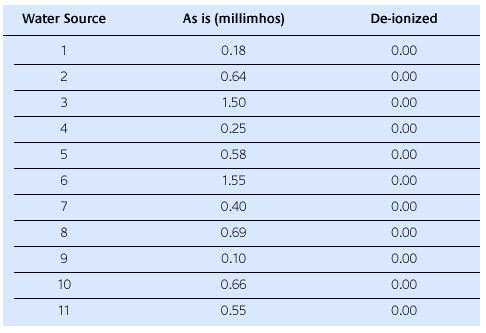 Before the water samples were de-ionized, each sample could conduct electricity quite welled-ionizing reduced the conductivity to zero, as shown in Table 2. The de-ionizing process removed ions. This is all nice but what does it do to the investment properties?