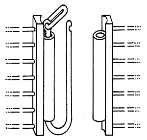 The following catches are all based on a conventional hinge - that is, a series of tubes (knuckles) soldered alternately onto two elements in an alignment that permits a rod (hinge pin) to penetrate the entire series. In the case of a clasp, the pin is removable. The basic arrangement is shown in figure 12.51.