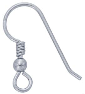 This 0.5 mm ear wire features a decorative coil, a 3 mm bead, and an open loop for attaching dangles or drops. The silver is rhodium plated for a durable, tarnish-resistant finish. The post/wire size is 0.032 inch. Contact: RIO GRANDE, 7500 Bluewater Road NW, Albuquerque, NM 87121; 1-800-545-6566; fax 800-965-2329; e-mail info@riogrande.com; riogrande.com.
