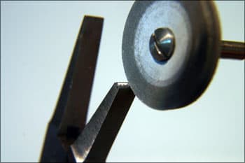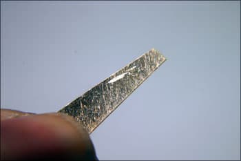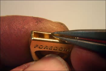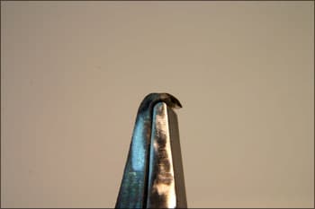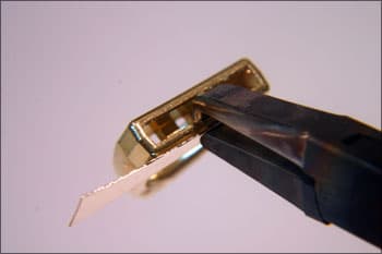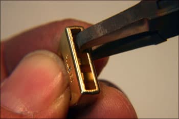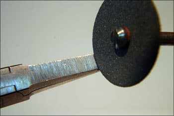 These pliers are used to pull back bezels on channel set rings. This allows you to drop in the stones without thinning the edge to allow the stone to drop in. It works especially well with the continuous channel method that the all-set tool creates. Mark the bottom jaws about 0.25 in from the end.