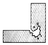 More or less deep intercrystalline fissures of irregular outline characterize this defect. The cracks often show a fine dendritic structure. The defect most often appears in the last sections of the casting to solidify where sharp angles or wide variations of mass are present.