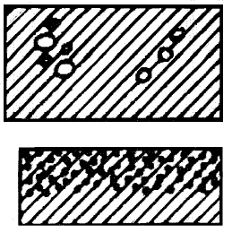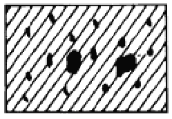 Hard inclusions, more or less finely dispersed and sometimes rather large. The casting may appear brittle and will display cracking if only slightly bent.