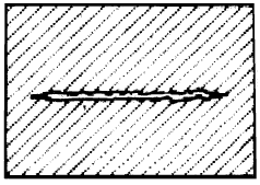 Narrow cavities resembling tears or fissures, generally perpendicular to the surface of the casting. Their depth may be as great as 2 cm. The internal surface of the cavity is dendritic.