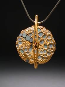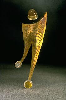 His contemporary work has been in the area of "Wearable art" - challenging audience and wearer. This new work has been shown in numerous venues, magazines and the internet. His focus, since 1997, has been his "Cage" series with applications from Body Art to Jewelry, concentrating on the later. "Cage" jewelry is made by welding Stainless Steel wire with an Orthodontic Fusion Welder, the wire is then electroformed and literally grown in a copper-acid bath, finally it gets a heavy gold electroplating. Metalsmiths in jewelry programs worldwide have been taught techniques and work esthetics he developed and found ways to work them into their portfolios, crediting his teachings for their success as artists.
