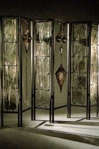 In her most recent work, seemingly endless chains are hung from ceiling to floor. With this chain, sometimes attached, sometimes separate, are elongated bulbous glass vials, distorted from heating and pulling. The vials hold found objects that include flower parts, seeds, and metal. Though not physically defining the female form, the piece embodies the more intimate aspects of the previous work and describes an internal struggle with memory and pain, captured in clear glass and hanging in space. The chains are made with meticulousness that forces the viewer to consider the technical process as well as the painstaking repetition of constructing and connecting the tiniest details of an individual's history. The resulting installation is like a glass screen. We need some yet invisible key to open the last padlock.