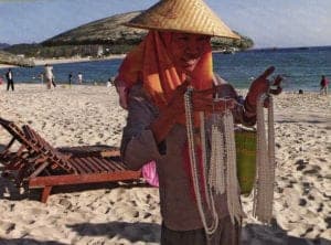 Yet pearl culture permeates Hainan's lifestyle, much more so than in the other two pearl provinces. Maybe it's the tropical climate and the sapphire-hued South China Sea, with its miles of white sand beaches. Or it could be the coconut palms and vibrant hibiscus that line the wide boulevards and give the island a casual, laid-back feel. Pearls seem to be a natural extension of Hainan's character. While pearl sales alone are not a large part of Hainan's overall economy, they are inextricably linked to tourism, which is the number-one industry on the island.