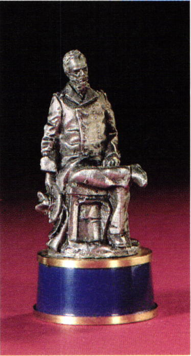 It is in keeping with this purpose that the Society is about to issue its own Civil War Chess Set. A dramatic tribute to the heroes of both North and South—and a work all the more intriguing because the playing pieces include richly detailed three-dimensional portrait sculptures of the great Generals of Union and Confederacy, captured for the ages in solid pewter, solid brass and fine enamels.