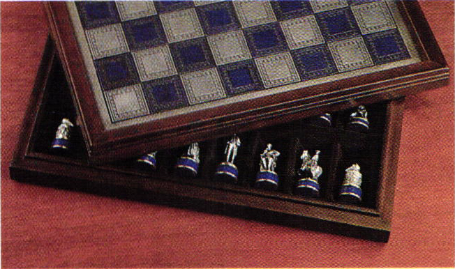 The chessmen themselves are scaled so that each one will suit the function assigned to it in the game of chess. And the handsomely crafted, pewter-finished playing board has been sized with equal care. Specially fitted, to also serve as the cover for the case which will house all 32 playing pieces, the board completes a presentation so attractive that the chess set will be played and displayed with pride and satisfaction. A Certificate of Authenticity, and specially written reference materials, will also be provided.