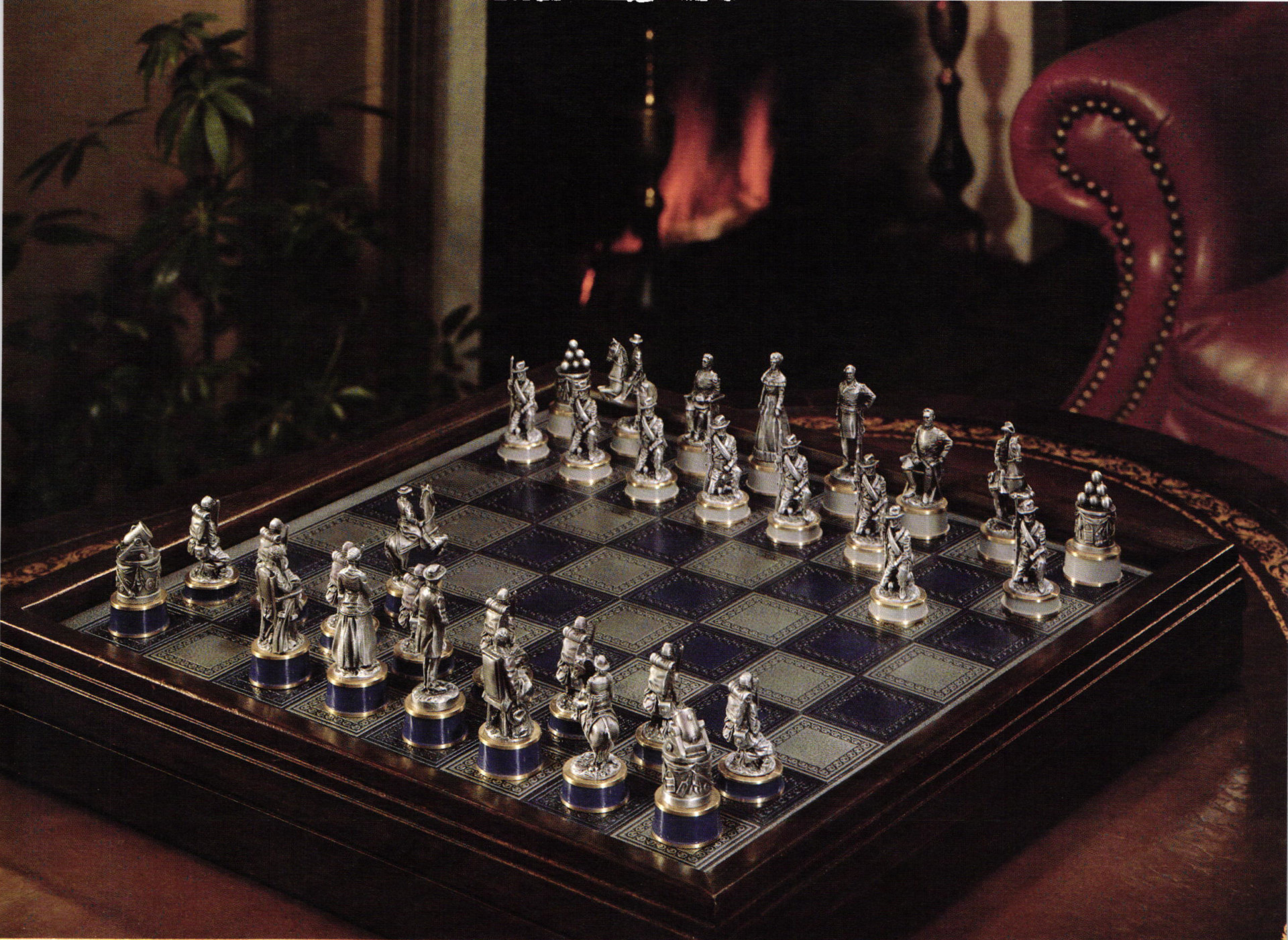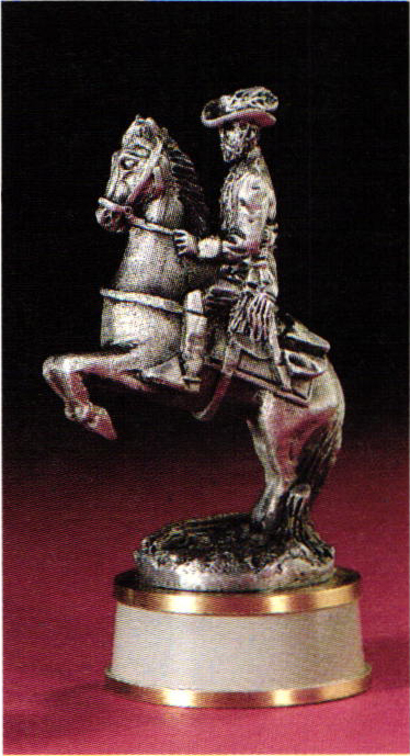 Here, then, is a work that will bring lasting pleasure to chess enthusiasts, history buffs, collectors of military miniatures—to anyone who appreciates our nation's heritage. Indeed, it is an unmistakably American chess set, that will make a dramatic addition to any room. And an exciting showpiece that will be displayed, enjoyed and treasured by each succeeding generation.