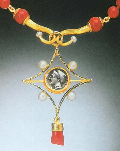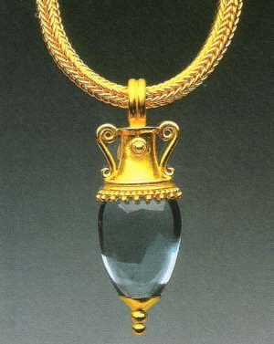 Perhaps the greatest debt in Classical jewelry design is owed the Etruscans, native Italians living in the sixth to fifth centuries BCE in what is now Tuscany. By the third century Be,, they had been absorbed by the Roman Empire, which in turn disseminated a 'universal Hellenistic Greek style." [2] But the Golden Age of Greece was itself preceded by the great civilizations of the East, specifically, of the city state of Ur (Babylonia, now It ad) as far back as 3500 BCE. Cold hair ornaments in dons] motifs and gold chains with gemstone beads formed the basis of designs that migrated increasingly westward.